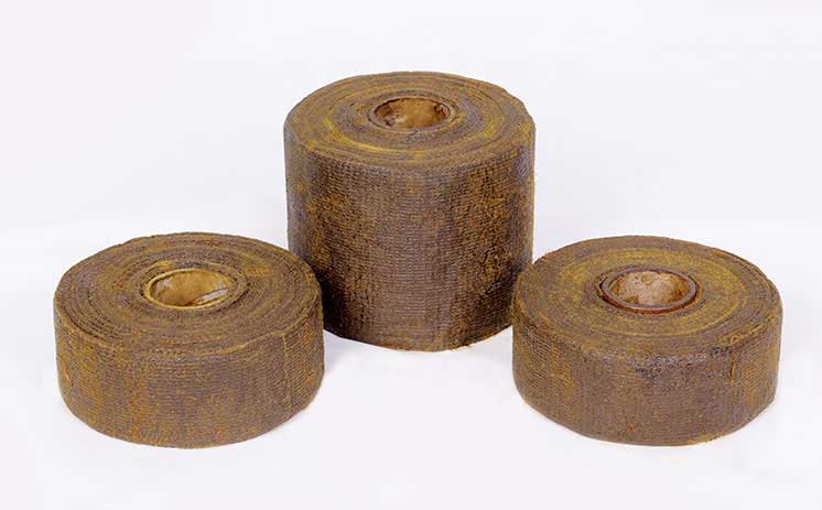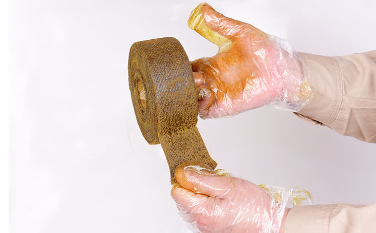 3、通常以最小搭接寬度25mm螺旋繞纏礦脂帶,延續(xù)帶長時鏈接重疊不部位應(yīng)小于100mm。對于嚴(yán)重和特殊的腐蝕環(huán)境,建議搭接帶寬的55%重疊繞纏礦脂帶。